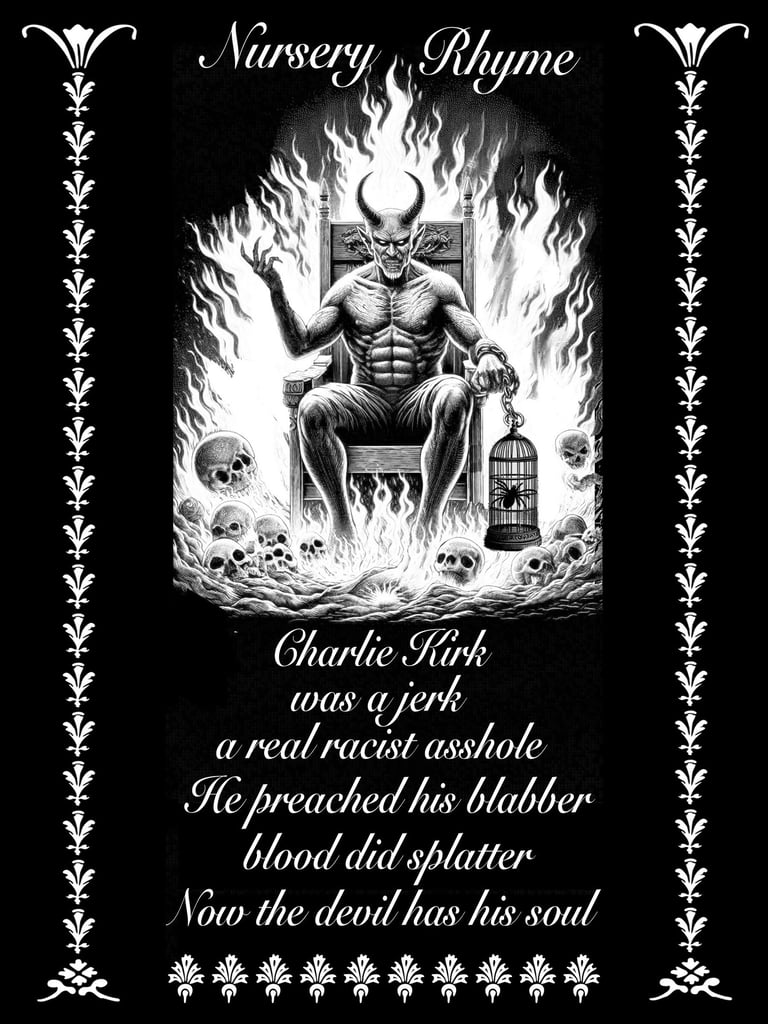 As is well known, Charlie Kirk was a political provocateur who reveled in making racist remarks and downplayed the Sandy Brook massacre of kids to support gun toting, anywhere, anytime. The irony is that he was gunned down! It’s obvious that this dude wasn’t gonna make it to Heaven. So the question is, did he go straight to hell or maybe got a break and went to purgatory. What do you think?
