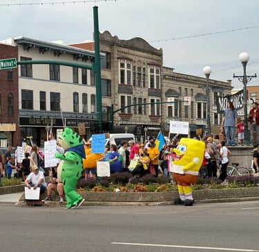 October 18 downtown Bloomington on the Square, around 1000 people of all varieties showed up to protest Donald Trump‘s attempts to be a king/dictator.