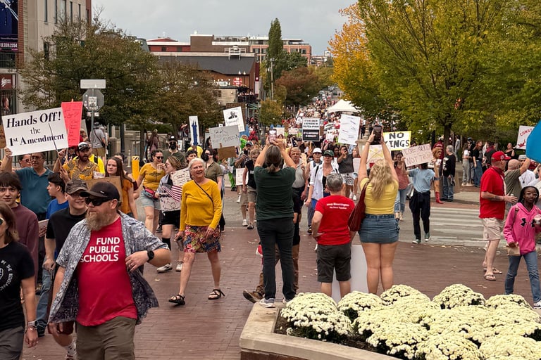 Recent “No Kings” rally drew large crowd of supporters to downtown Bloomington